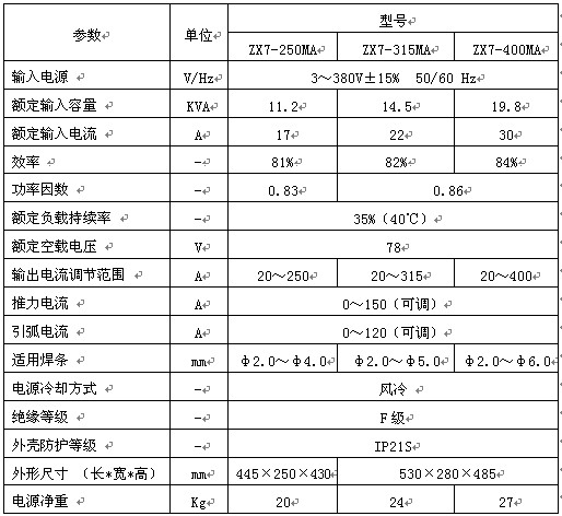 ZX7-250、315、400MA逆變式直流弧焊機(jī)