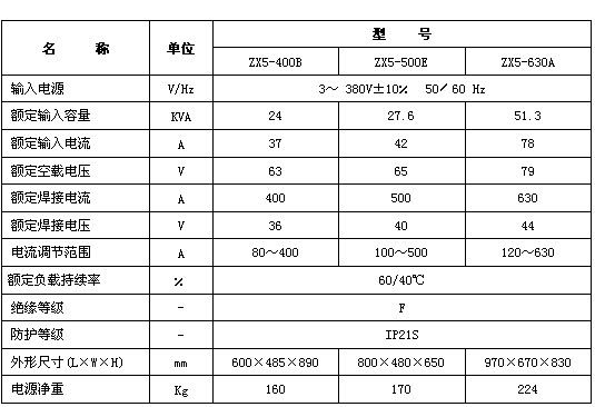 ZX5-400B、500E、630A 可控硅整流手工電弧焊機