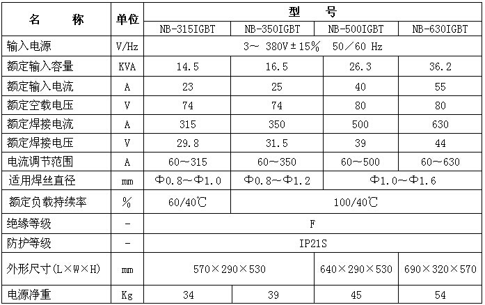 NB-315、350、500、630IGBT逆變式氣體保護焊機