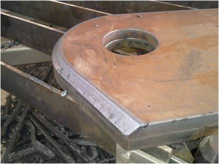 雙工位切割機器人工作站主要用于電力機車和煤機產品碳素鋼、低合金高強度鋼板材坡口的切割加工。為有效提高生產效率,減小工人勞動強度,工作站采用單機器人雙工位平行布置方式,即:單套座式切割機器人+雙套切割平臺。機器人選用日本OTC公司生產的AII-V6L型機器人,工作半徑達2006mm。該機器人具有臂伸范圍廣,負載大等特點,特別適合于切割加工的應用。